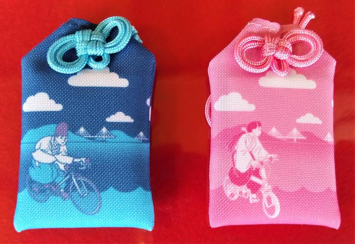 自転車・バイク・交通安全関係の御守・御札 一覧へ戻る自転車御守 自転車に乗った神主と巫女が特徴的な交通安全の肌守です。 背景にはしまなみ海道をイメージした海と橋があしらわれています。自転車御守御初穂料各 1,000円(税込) 郵送でも対応致します。この御守を受けたい方は下記アドレスへhttps://ooyamajinja-innoshima.square.site/shop/c/4